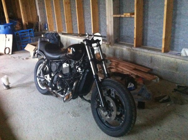 après mes petits travaux de révision sur la moto j’ai enfin trouvé la solution pour ma fourche, et c’est un train avant complet de 1000VFF qui vient se greffer dessus!